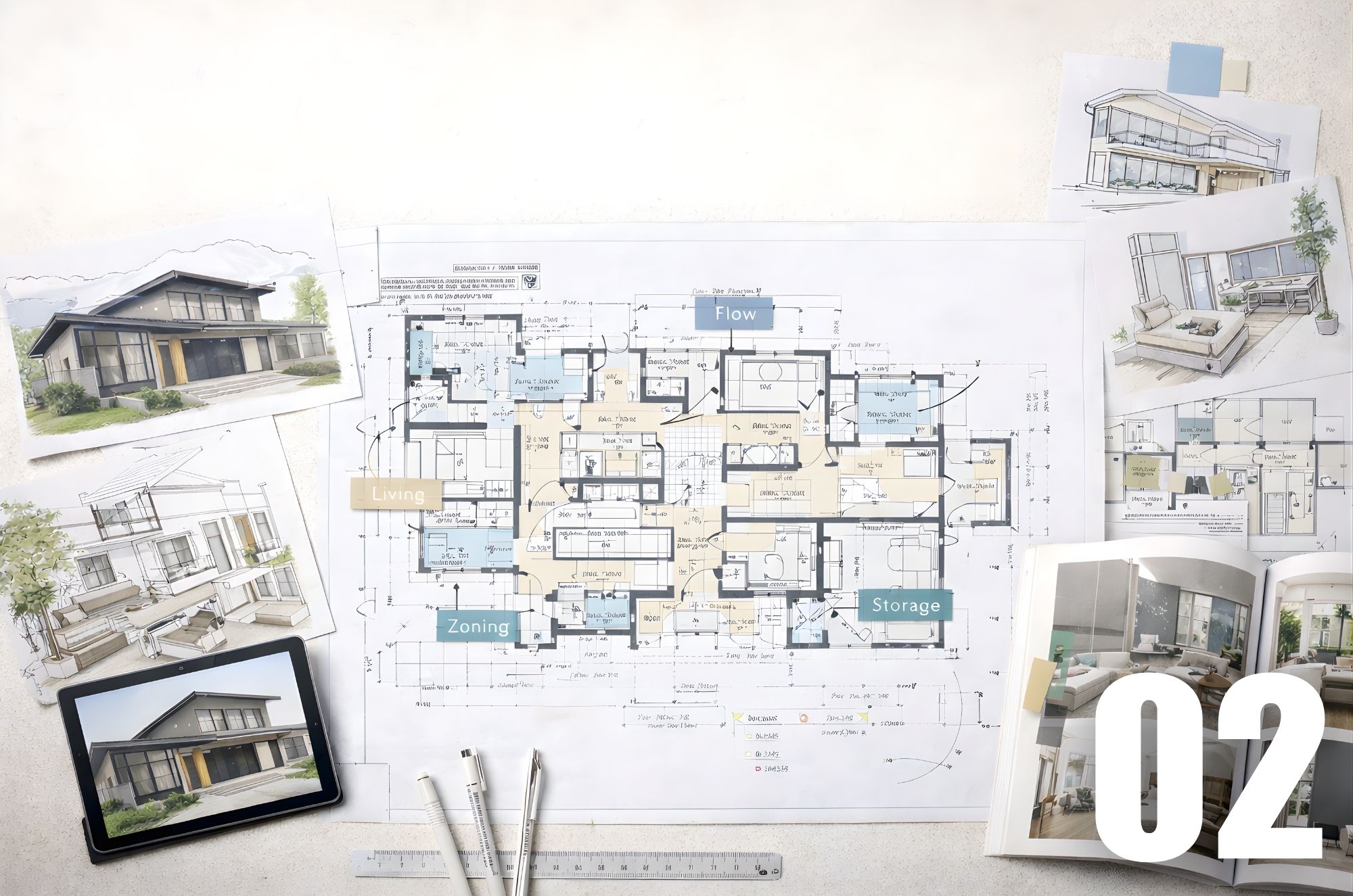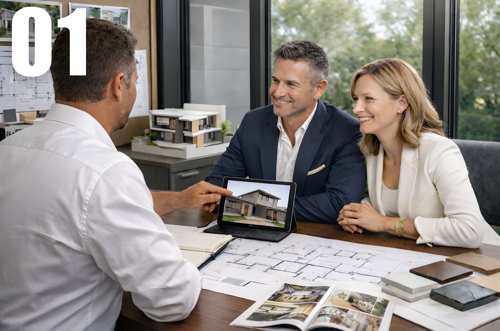 We begin with a conversation to understand your vision, lifestyle needs, budget and timeframe. You’ll share your must-haves (and nice-to-haves), inspiration, and any special requirements. We’ll guide you on what’s achievable for your block and provide a rough price indication so you can plan with confidence.