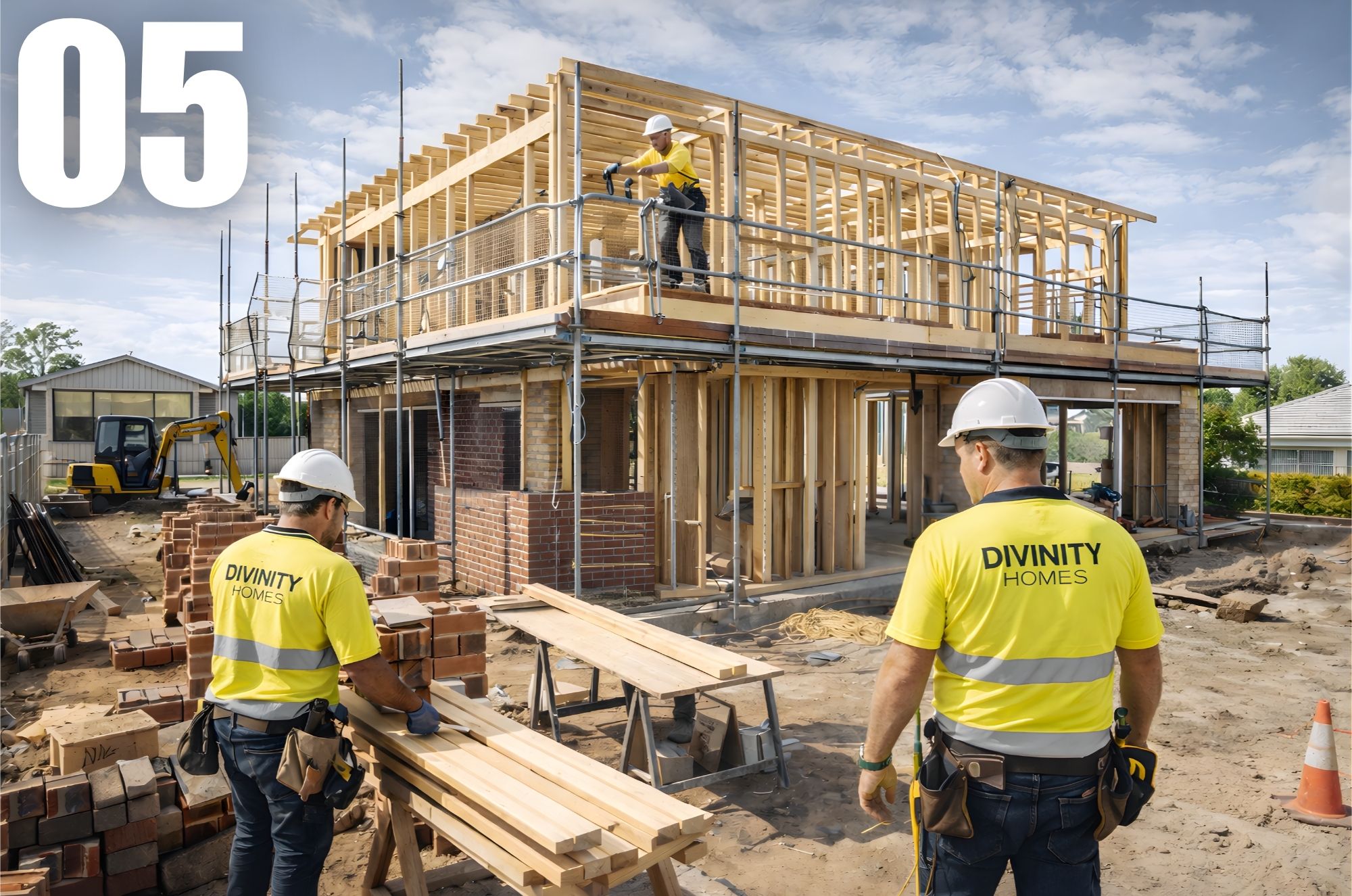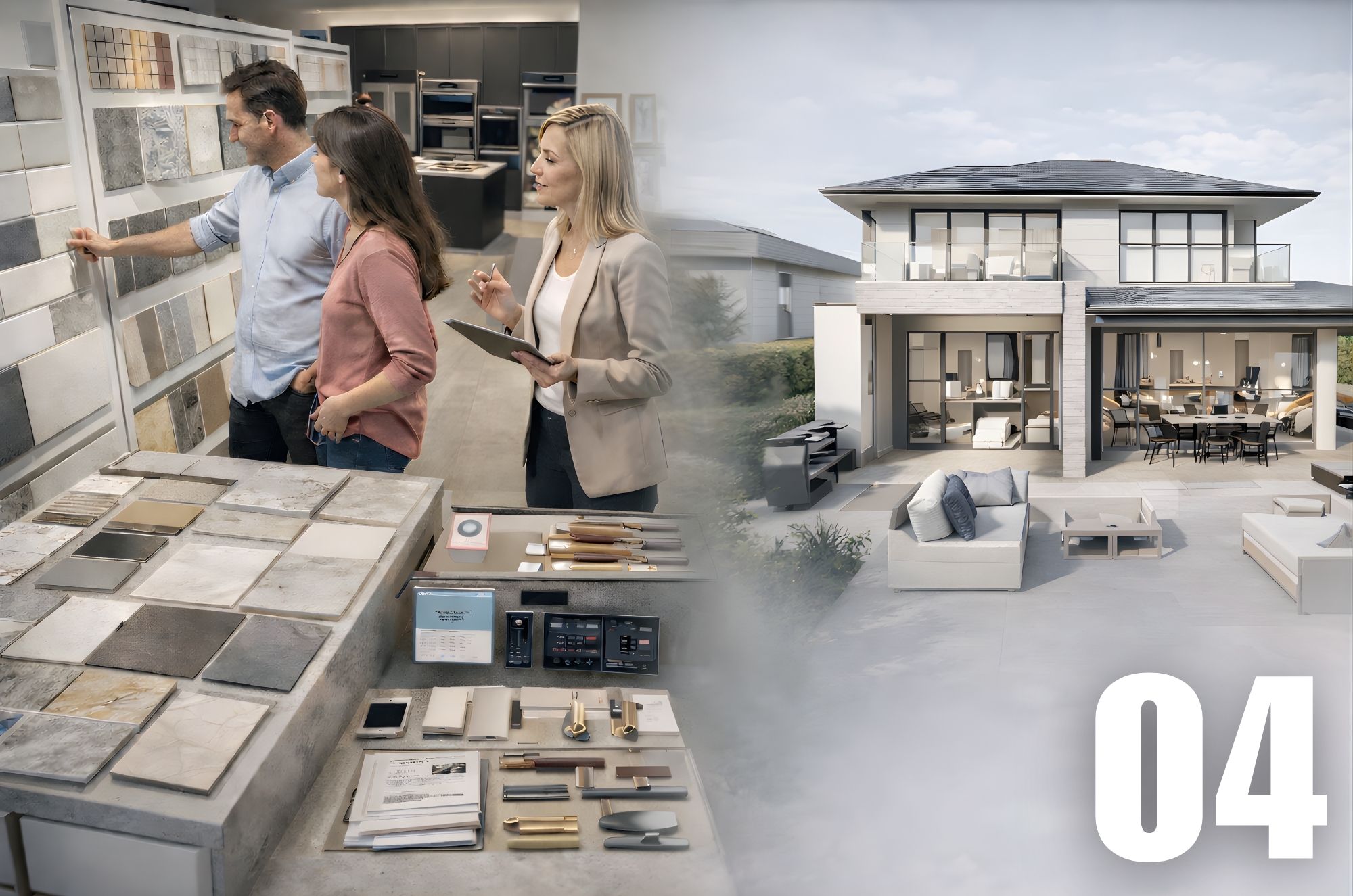 This is where your home becomes truly yours. You’ll visit showrooms and suppliers to choose finishes and features — tiles, tapware, cabinetry, benchtops, flooring, colours, appliances and more — including upgrades and smart-home technology if desired. To make decisions easier, we can also provide a 3D design/visualisation based on your plan, so you can picture the space and feel confident in your selections.
