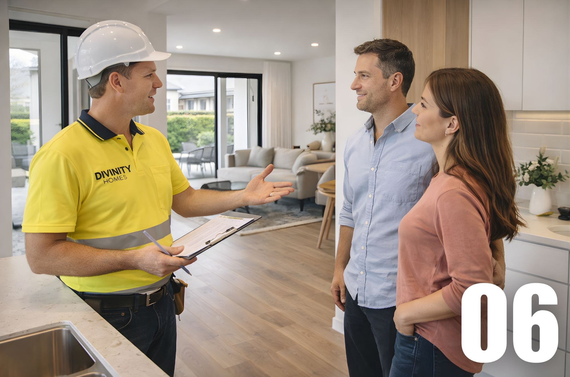 As we reach practical completion, we do a final on-site walkthrough with you. We’ll review the finishes, confirm the home meets the expected standard, and go through any final items before handover.