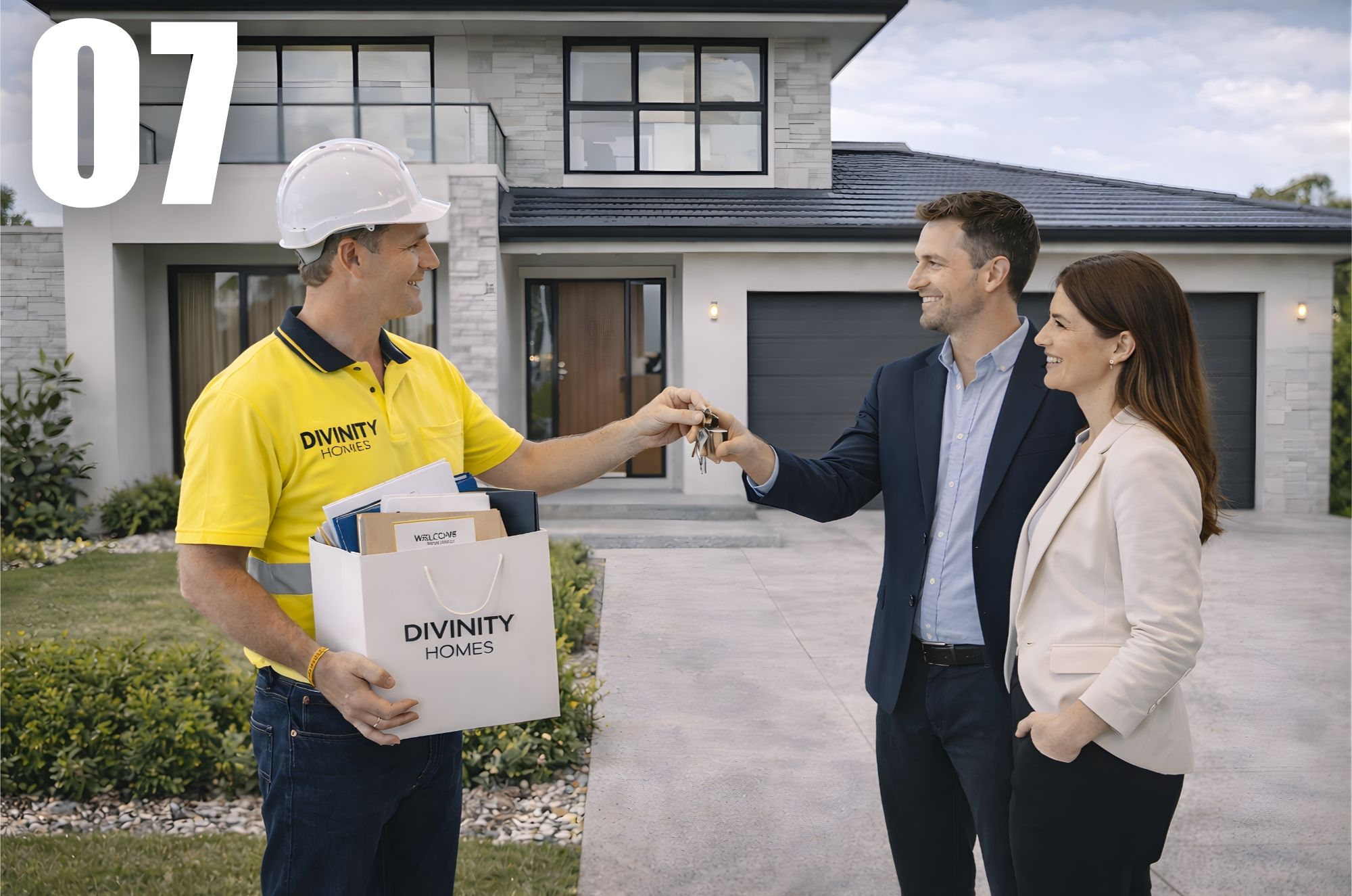 Handover is a major milestone — and we make it feel like one. You’ll receive your keys, a welcome pack with important documents, warranty information and helpful guides, plus a small welcome home gift from us.
