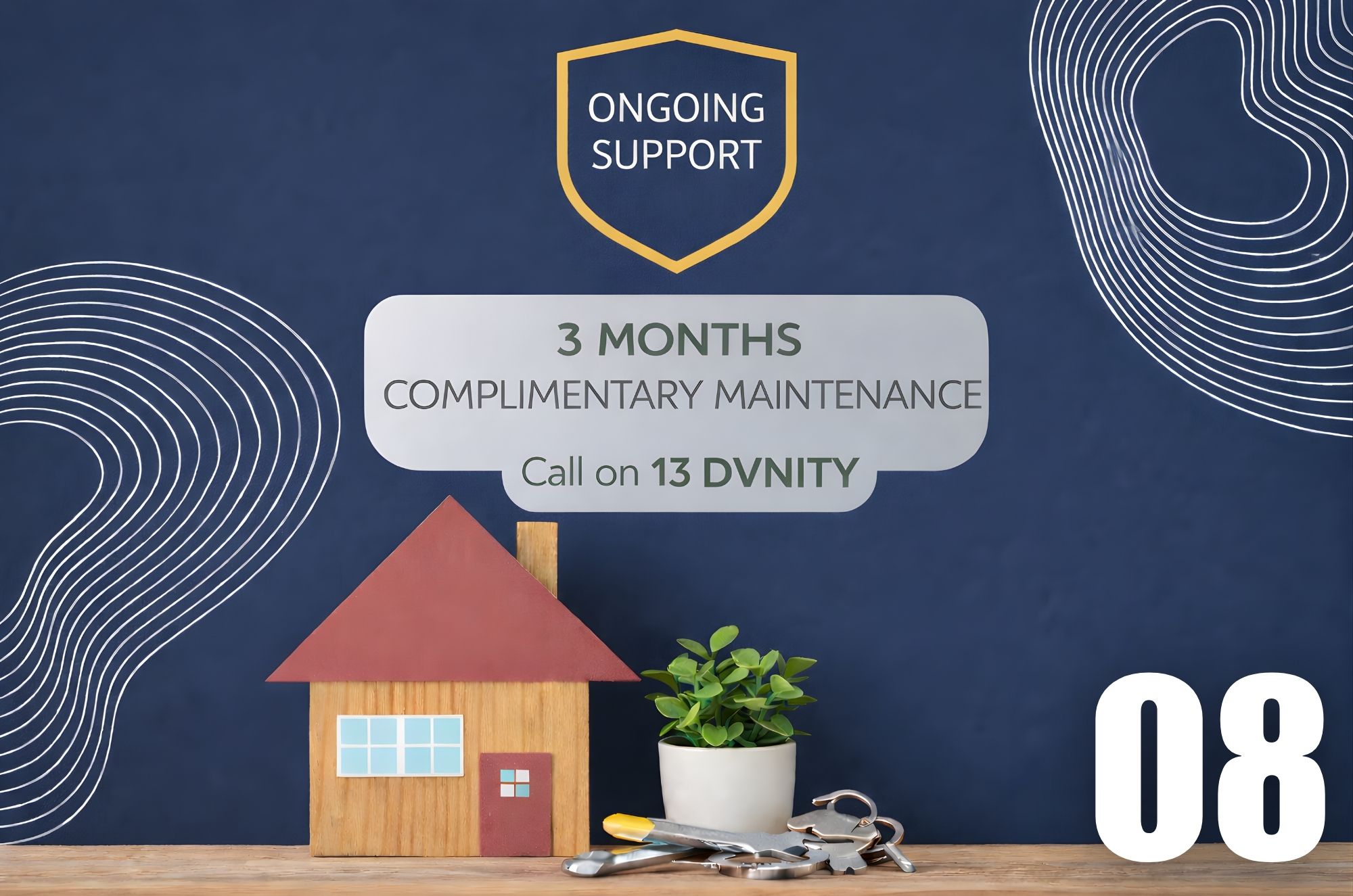 Our support continues after you move in. We provide 3 months complimentary maintenance to help with any settling items and ensure you feel fully supported in your new Divinity home.